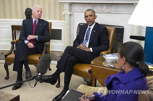 | △ 조 바이든 부통령, 버락 오바마 대통령, 수전 라이스 국가안보보좌관 (AP=연합뉴스) |