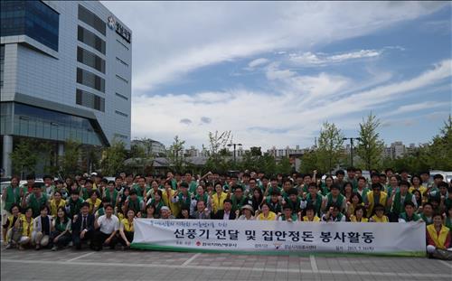 (서울=연합뉴스) 이봉준 기자 = 한국지역난방공사[071320] 신입사원들은 16일 성남시 수정구 일원에서 '독거 어르신들을 위한 시원한 여름나기' 봉사활동을 벌였다.