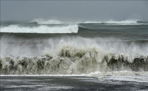 | △ 태풍 영향권에 들어간 16일 일본 고치현 앞바다의 높은 파도(교도.연합뉴스) |
