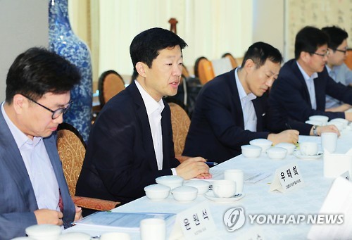| △ 우태희 차관보, 제8차 경제통상연구모임 참석 (서울=연합뉴스) 우태희 산업통상자원부 통상차관보가 17일 오전 서울 역삼동 기술센터 용궁에서 식품산업 관련 산학연 등 관계자들이 참석한 가운데 열린 '제8차 경제통상연구모임'에 참석, 인사말을 하고 있다. 이날 모임은 중국 식품분야 비관세장벽 현황과 한-중 FTA활용방안, 식품산업 해외진출 지원현황과 계획 등을 논의하기 위해 열렸다. (산업통상자원부 제공) |