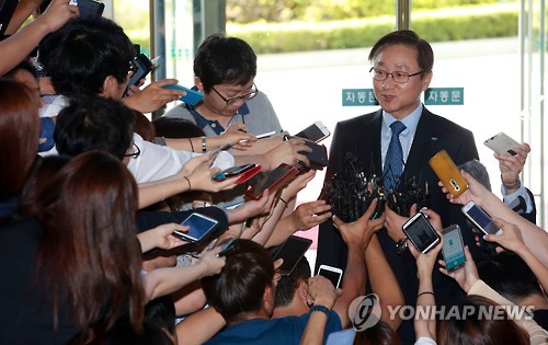 | △ 답하는 김신 삼성물산 상사부문 사장 (서울=연합뉴스) 박동주 기자 = 김신 삼성물산 상사부문 사장이 17일 오전 서울 양재동 aT센터에서 열린 제일모직과의 합병계약 안건을 주주 결의에 부치는 임시 주주총회에 참석하던 중 취재진의 질문을 받고 있다. |