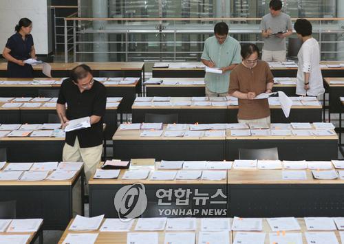 | △ 한 대학 교수들이 1단계 서류심사를 하고 있다. (연합뉴스 자료사진) |