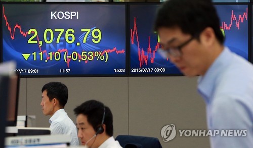(서울=연합뉴스) 장하나 기자 = 코스피가 17일 외국인과 기관의 매물 폭탄에 2,070선까지 후퇴했다.