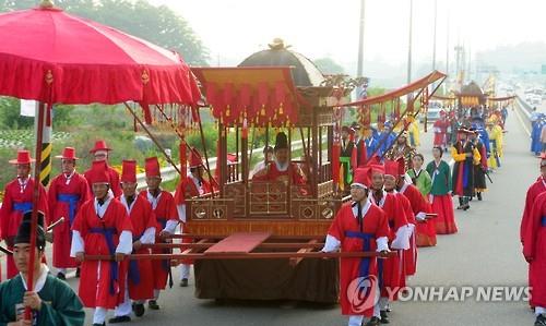 | △ 지난 5월 '제9회 세종대왕과 초정약수축제'때의 어가 행차 재연 모습. <<연합뉴스 DB>> |