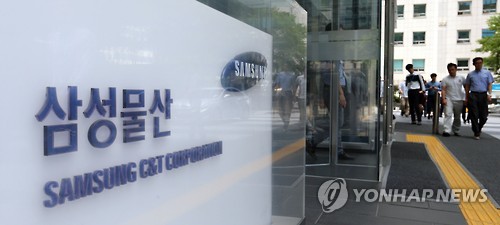 | △ 삼성물산이 주주총회에서 제일모직과 합병을 결정한 17일 서울 서초구 삼성물산 사옥으로 관계자들이 출입하고 있다. |