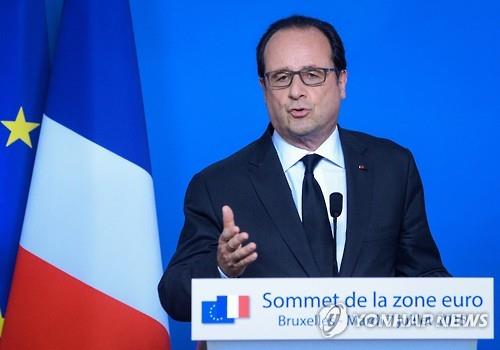 (파리 AFP=연합뉴스) 프랑수아 올랑드 프랑스 대통령이 유로 관리체제 강화를 촉구하며 프랑스가 이에 동참하겠다고 밝혔다.