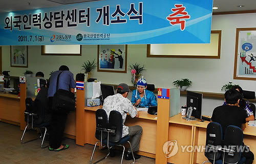 | △ 경기도 안산 외국인력상담센터를 찾은 외국인근로자들이 상담을 하고 있다. (연합뉴스 자료사진) |