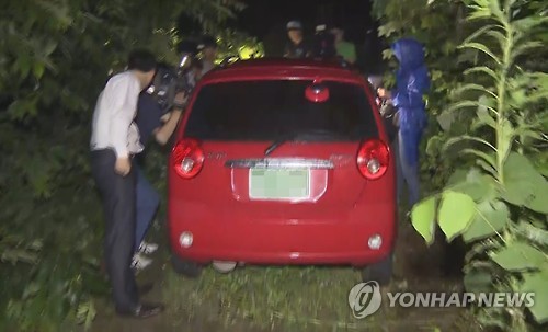 | △ 18일 낮 12시께 용인시 처인구 이동면 화산리 한 야산 중턱에서 임모(45·국정원 직원)씨가 자신의 마티즈 승용차 안에서 번개탄을 피워 숨진 채 발견됐다. 사진은 이날 임 씨가 탑승했던 차량. |