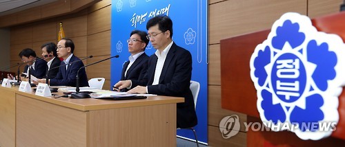 | △ 지난 30일 윤성규 환경부 장관이 POST-2020 국가 감축목표 확정 발표 브리핑에서 온실가스 감축목표를 2030년 배출전망치(BAU) 대비 37%로 확정했다고 밝히고 있다.(연합뉴스 자료사진) |