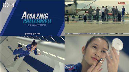 아이오페는 지난해부터 공개한 에어쿠션 홍보 영상 '놀라운 대결', '놀라운 실험', '놀라운 도전' 등 3편의 누적 조회 수는 2천만 건에 달한다고 전했다.