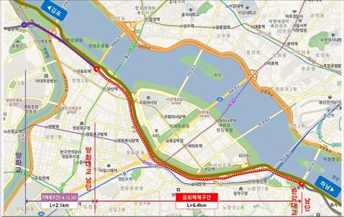 서울시는 30일부터 양화대교 남단(선유도 인근)에서 한강대교 남단(노들역 인근)에 이르는 6.4km 구간을 자동차전용도로에서 해제한다고 21일 밝혔다.