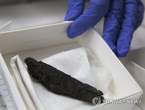 (예루살렘 신화=연합뉴스) 숯처럼 새까맣게 타버린 상태로 발견된 1천500년 전 성서 두루마리가 첨단 기술 덕분에 해독됐다.