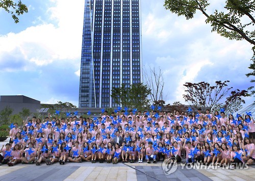 | △ 한전 '2015년 KEPCO 대학생 서포터스' 출범식 (서울=연합뉴스) 22일 전남 나주 한국전력 본사에서 열린 '2015년도 한전(KEPCO) 대학생 서포터스' 발대식에서 참석자들이 기념촬영을 하고 있다. 대학생 서포터스는 8월부터 12월까지 활동하며 참신한 대학생의 시각에서 전력서비스에 관한 다양한 아이디어를 제시하게 된다. (한국전력 제공) |