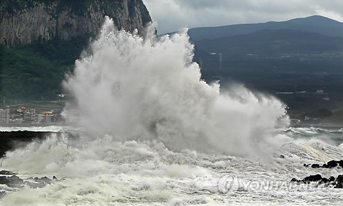 | △ 지난 2012년 태풍 볼라벤 접근 당시 파도가 몰아치는 제주 서귀포시 안덕면 사계리 해안. (연합뉴스 자료사진) |