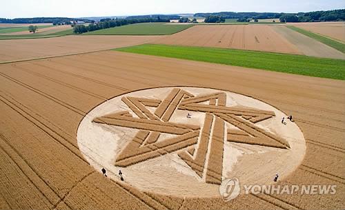 (베를린·서울=연합뉴스) 고형규 특파원·이율 기자 = 독일 남부 뮌헨 외곽의 알링 지역 밀밭에 초대형 별 문양이 나타나 현지 경찰이 수사에 나섰다.