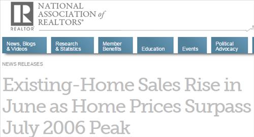 미국 부동산중개인협회(NAR)는 지난 6월 기존주택 판매량이 연간 환산 기준 549만 채로 한 달 전보다 3.2% 증가하며 2007년 2월 이후 최고치를 기록했다고 22일(현지시간) 발표했다.