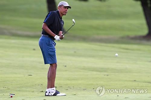 (워싱턴=연합뉴스) 신지홍 특파원 = 버락 오바마 미국 대통령이 지난 19일(현지시간) 민주당 하원 의원들과의 이례적 동반 골프에서 내기를 해 3달러를 잃었다고 미 언론이 22일 전했다.