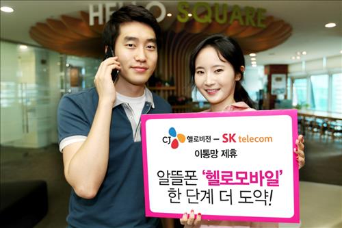 CJ헬로비전은 SK텔레콤[017670]과 알뜰폰 도매제공을 위한 양해각서(MOU)를 체결하고 SK텔레콤 망을 활용한 알뜰폰 서비스를 시작한다고 23일 밝혔다.