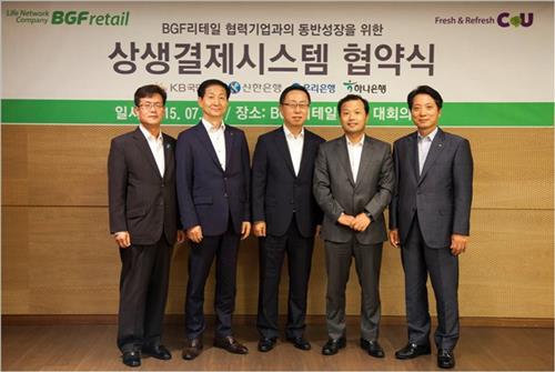 BGF리테일은 22일 KB국민은행·신한은행·우리은행·하나은행과 '상생결제시스템' 도입을 위한 업무 협약을 체결했다고 23일 밝혔다.