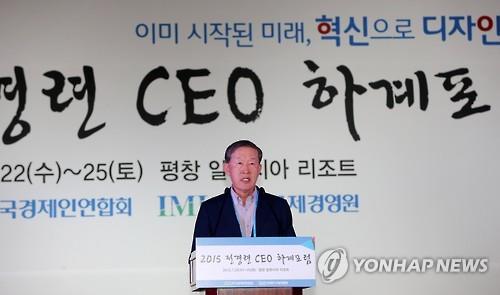 (평창=연합뉴스) 고웅석 기자 = 허창수 전경련 회장은 이번 엘리엇 사태가 우리 기업들에 교훈이 될 것이라면서 주주들과의 소통과 교감 등을 강조했다.