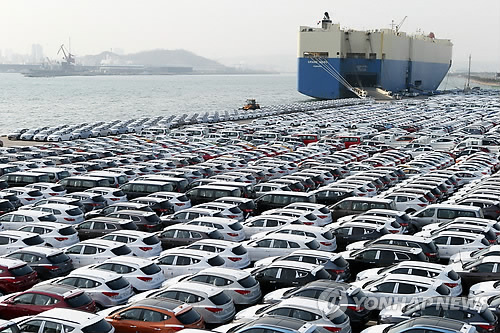 | △ 수출을 기다리는 차량들 (연합뉴스 자료사진) |
