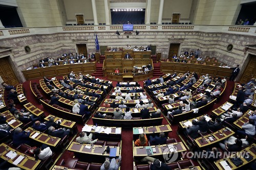 | △ 그리스에 대한 3차 구제금융 협상이 개시됐으나 그리스 부채를 보는 관련 주체들의 시각과 해법이 서로 달라 협상 전망이 쉽지 않다. 사진은 23일(현지시간) 구제금융 2차 개혁안 표결하는 그리스 의회 모습. (AP=연합뉴스 자료사진) |