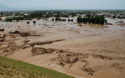 또 23일에는 톈산산맥의 중턱에 자리한 알마티 외곽에서 만년설과 빙하가 녹은 물이 삽시간에 불어나 하류지역의 주택 120여채가 침수됐다.