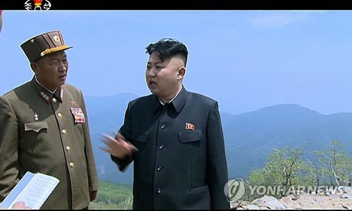 | △ '망명설' 북한 박승원 상장, 조선중앙TV 기록영화 등장 (서울=연합뉴스) '망명설'이 돌았던 북한 박승원 상장이 조선중앙TV의 기록영화에 모습을 드러냈다. 중앙TV가 26일 방영한 기록영화 '부강조국건설의 불멸의 대강을 밝혀주시여'를 보면 박승원 상장(사진왼쪽)이 마식령스키장 건설 현장을 현지 지도하는 김정은 국방위원회 제1위원장을 수행하는 모습이 두 차례 등장한다.2015.7.26 nkphoto@yna.co.kr |