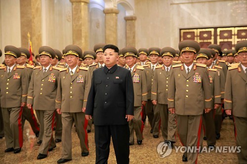 | △ 전승절 맞아 금수산태양궁전 참배하는 북한 김정은 (평양 조선중앙통신=연합뉴스) 북한 조선중앙통신은 김정은 북한 국방위원회 제1위원장이 정전협정 체결 62주년인 27일 0시 김일성 주석과 김정일 국방위원장의 시신이 안치된 금수산태양궁전을 참배했다고 27일 보도했다. 2015.7.27 photo@yna.co.kr |