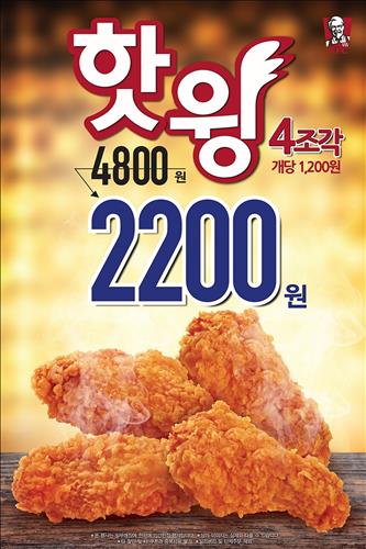 KFC, '핫윙' 54% 할인…4조각 2천200원