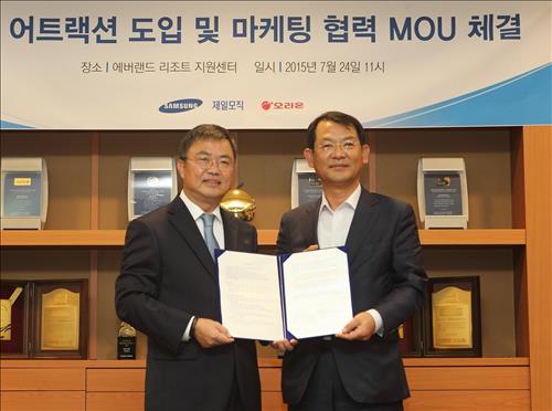 오리온은 에버랜드와 오는 10월 오픈 예정인 어트랙션을 공동 개발하고 앞으로 3년간 관련 부대시설 운영과 마케팅을 함께 진행한다.