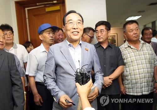 | △ 항소심 판결 뒤 환하게 웃는 정상혁 군수 <<연합뉴스 DB>> |
