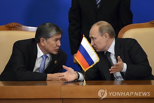 | △ 알마즈벡 아탐바예프 키르기스스탄 대통령(왼쪽)과 블라디미르 푸틴 러시아 대통령. |