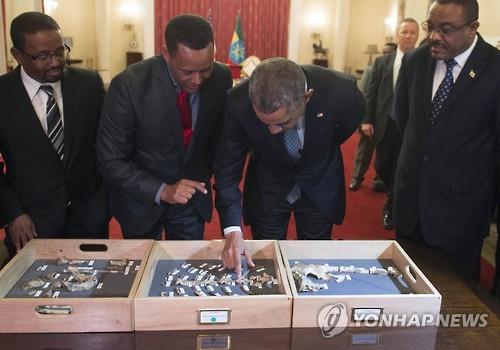 오바마, 에티오피아서 인류조상 '루시' 직접 만져(종합)