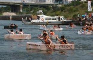 참가자들은 재활용 종이박스를 이용해 배를 직접 만든 후 레이스를 펼친다.