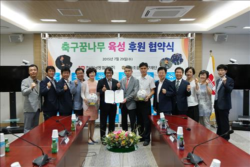 | △ 한국남동발전이 29일 조광래축구재단과 축구꿈나무 인재 양성을 위한 협약(MOU)을 맺었다. |