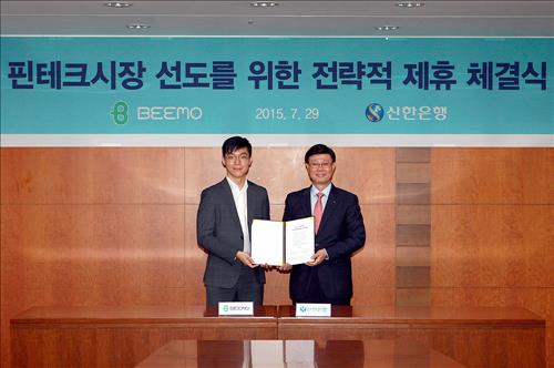 (서울=연합뉴스) 고동욱 기자 = 신한은행은 개인 간(P2P) 대출 플랫폼인 어니스트펀드를 운영하는 핀테크 기업 ㈜비모와 전략적 제휴를 맺었다고 29일 밝혔다.