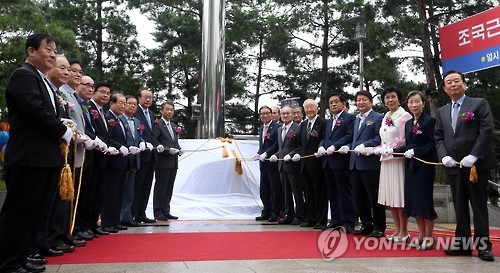 (서울=연합뉴스) 윤종석 기자 = 재단법인 박정희대통령기념재단은 29일 서울 마포구 상암동 박정희 대통령 기념관에서 '조국 근대화 국기게양대' 준공식 행사를 했다.