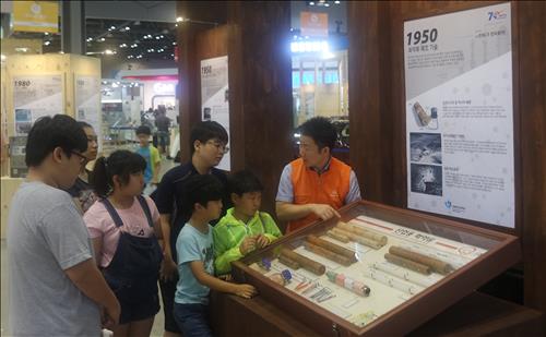 ㈜한화 직원들은 어린이들과 함께 광복 70주년 과학기술 70선, 미래과학 30년 등의 전시관을 관람했다.