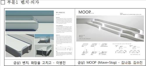 벤치·의자 부문에서는 모든 모서리를 둥근(라운드) 형태로 설계한 '벤치, 화장을 고치고'(이병진) 등 2개 작품이 금상으로 선정됐다.