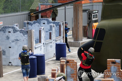 물총체험사격장은 BB탄 대신 물총과 비옷을 이용해 경기할 수 있도록 해 청소년에게 인기다.