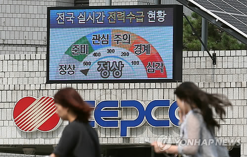 | △ 서울 강남구 삼성동 한국전력 앞 실시간 전력수급 현황(연합뉴스 자료사진) |