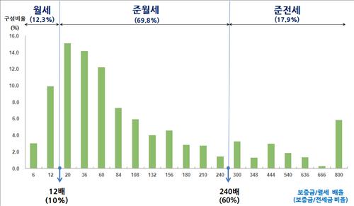 (세종=연합뉴스) 이재영 기자 = 보증금이 거의 없는 월세는 가격이 내려가는 반면 보증금이 전세의 60%가 넘는 월세는 가격이 오르는 것으로 나타났다.
