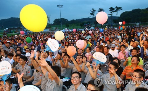 | △ '성공적으로 개최합시다' (문경=연합뉴스) 김준범 기자 = 24일 오후 경북 문경시 영강체육공원에서 열린 '2015 경북문경 세계군인체육대회' D-70일 기념행사에 참여한 군인이 성공 염원을 담은 풍선을 하늘로 올려보내고 있다. 2015.7.24 psykims@yna.co.kr |
