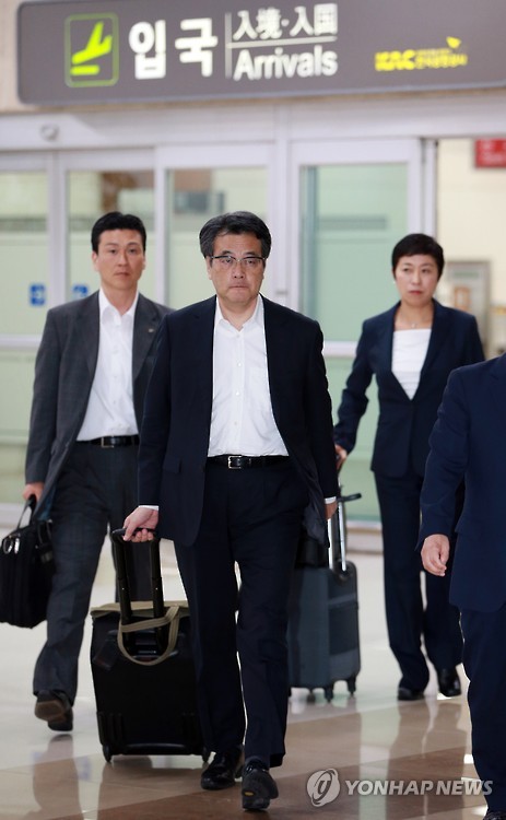 | △ 방한한 일본 민주당 오카다 가쓰야 대표 (서울=연합뉴스) 홍해인 기자 = 일본 제1야당인 민주당의 오카다 가쓰야(岡田克也) 대표가 2일 오후 후 서울 강서구 김포공항을 통해 입국하고 있다. 오카다 대표는 지난달 31일 기자회견에서 방한 계획과 함께 방문 기간 박근혜 대통령을 예방하는 방안을 조율중이라고 밝힌 바 있다. 2015.8.2 hihong@yna.co.kr |