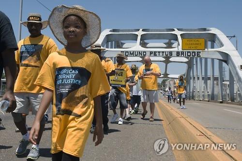 미국 NBC 방송 등에 따르면 미국 내 최대 흑인 인권단체인 전미유색인지위향상협회(NAACP)는 1일(현지시간) '셀마 행진'의 출발점이었던 앨라배마 주 셀마의 에드먼트 페터스 다리에서 '정의를 위한 미국의 여정'을 시작했다.
