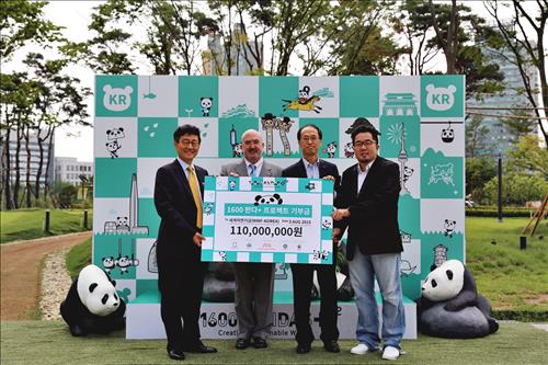 (서울=연합뉴스) 인교준 기자 = 롯데물산은 3일 오전 서울 잠실 소재 롯데월드몰(제2롯데월드) 잔디정원에서 박노경 롯데물산 지원본부장, 윤세웅 세계자연기금(WWF) 코리아 대표이사 등이 참석한 가운데 '1600 판다+' 환경 기부금 전달식을 했다고 밝혔다.