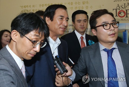 | △ 질문세례 받는 노병용 롯데물산 사장 (서울=연합뉴스) 임헌정 기자 = 노병용 롯데물산 사장이 4일 서울 송파구 롯데월드타워 홍보관에서 열린 롯데그룹 긴급 사장단회의를 마치고 취재진의 질문세례를 받고 있다. |