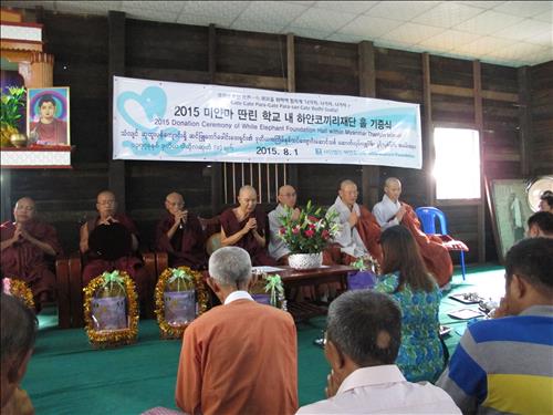 (서울=연합뉴스) 김희선 기자 = 국제개발협력기구인 사단법인 하얀코끼리(이사장 영담 스님)가 미얀마 양곤 딴린의 수투판사원에 학교 건물 '하얀코끼리홀'을 신축 기증했다고 4일 밝혔다.