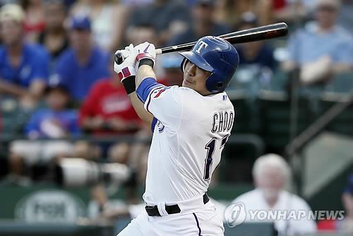 (알링턴=연합뉴스) 장현구 특파원 = 미국프로야구 텍사스 레인저스의 한국인 타자 추신수(33)가 5일(현지시간) 휴스턴 애스트로스와의 경기의 선발 출전 선수 명단에서 빠졌다.